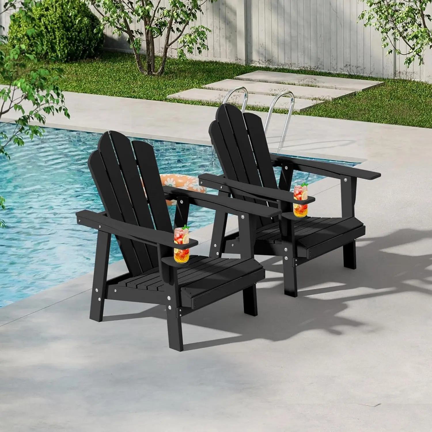 Each chair features a wide seat, ergonomic backrest, and built-in cup holder for added convenience, making them perfect for lounging in your lawn, garden, patio, or around a fire pit. The sturdy construction ensures stability and long-lasting performance with minimal maintenance required.