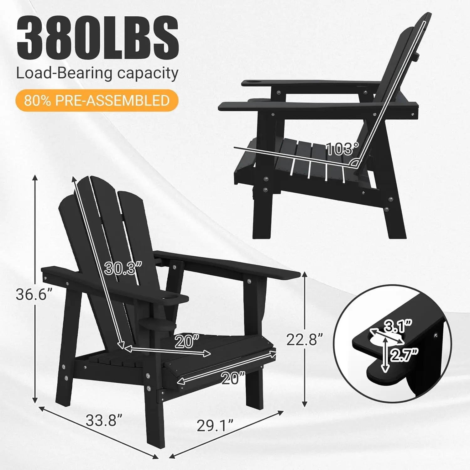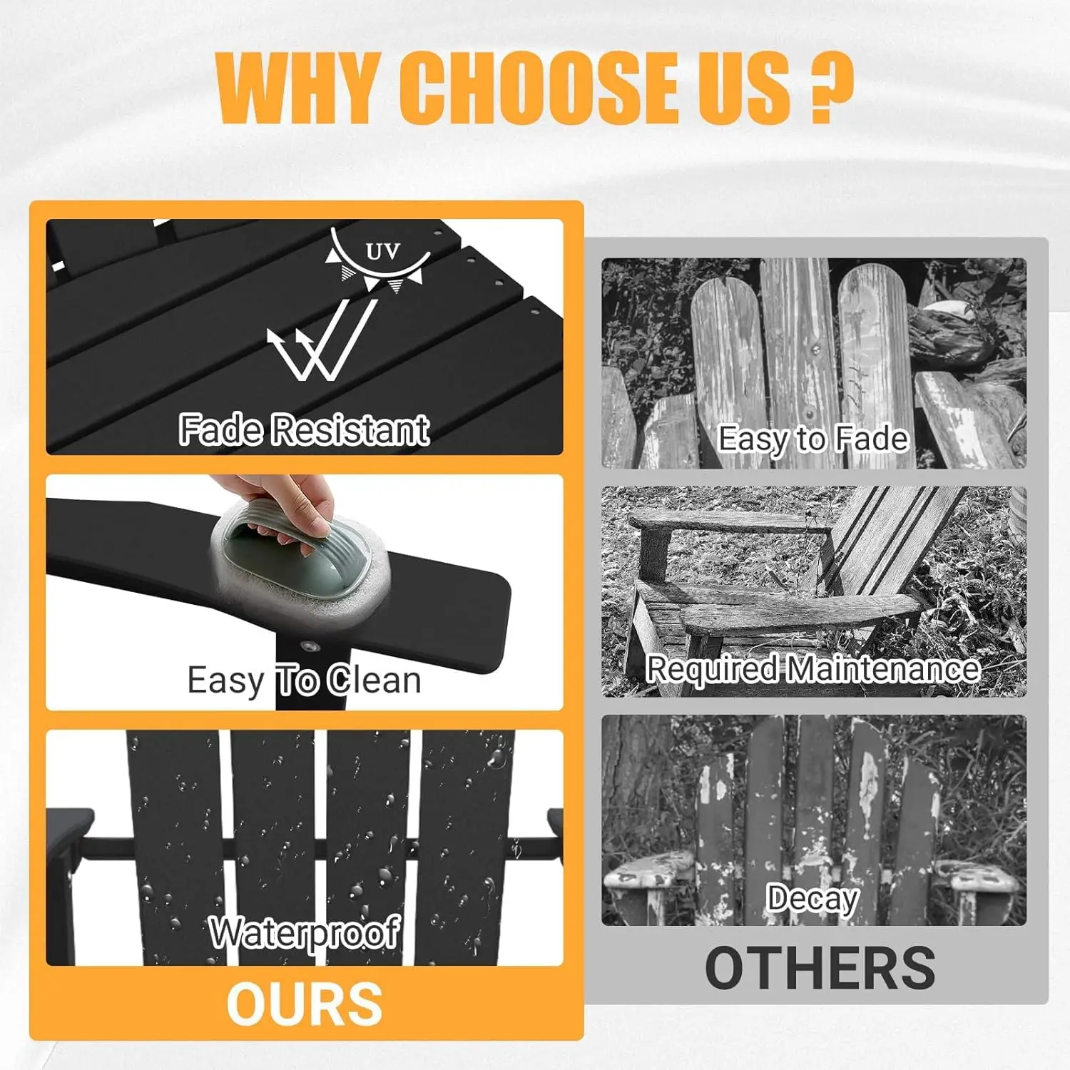 Upgrade your outdoor relaxation with this 4-piece HDPE Adirondack chair set, designed for comfort, durability, and timeless style. Made from high-density polyethylene (HDPE), these chairs are built to withstand sun, rain, and seasonal changes without cracking, fading, or warping.