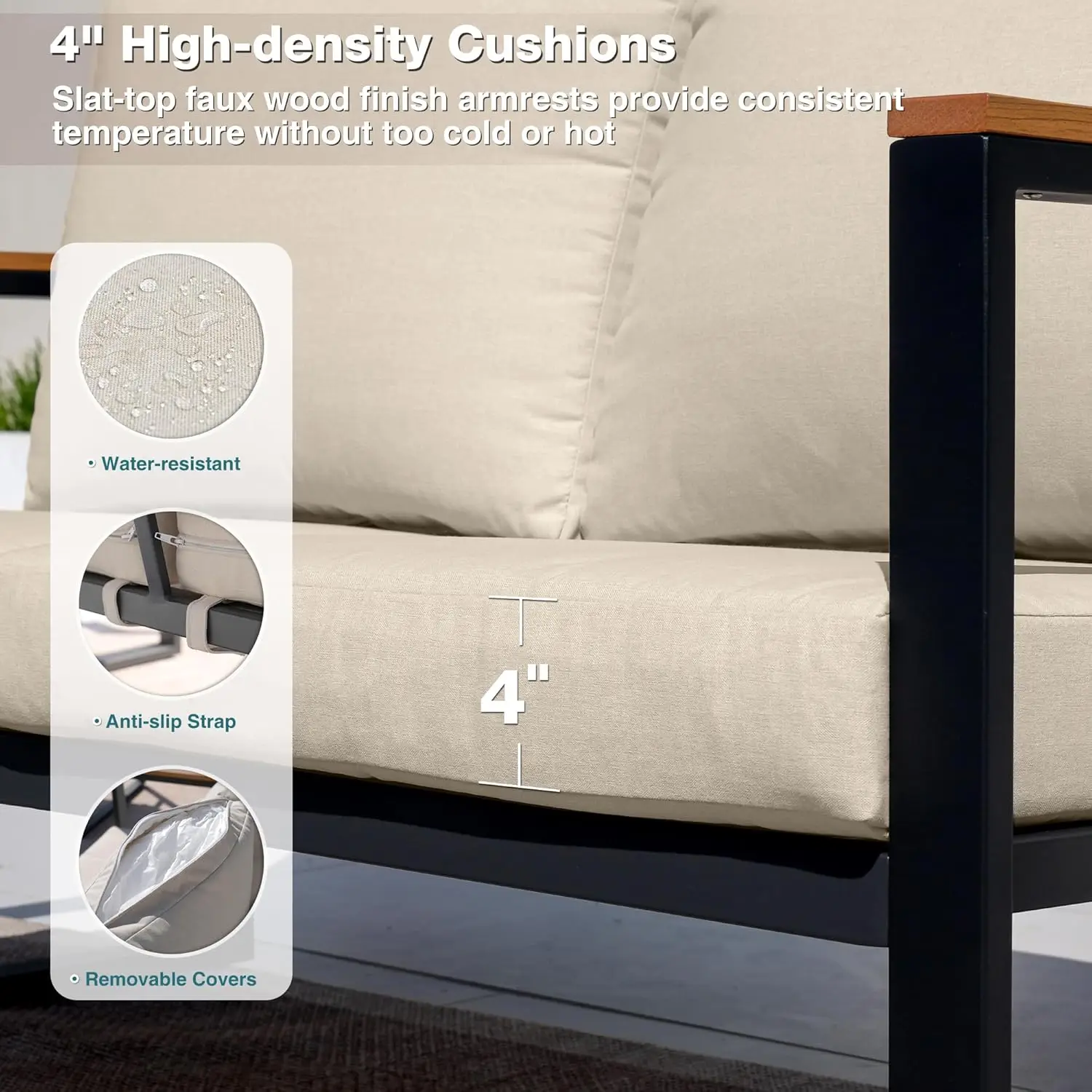 Create a welcoming outdoor retreat with this 4-piece metal patio furniture set complete with a matching coffee table. Designed with a strong metal frame, it delivers dependable durability and long-lasting outdoor performance. The comfortable seating arrangement makes it ideal for conversations, relaxing afternoons, or entertaining guests. Plush cushions provide supportive comfort while enhancing the set’s modern look. The included coffee table offers convenient space for drinks, snacks, or decorative accents. Its customizable configuration allows you to arrange the pieces to fit patios, decks, balconies, or garden spaces. Weather-resistant materials help preserve the set’s appearance through seasonal changes. The sleek design complements both contemporary and classic outdoor décor. Easy maintenance ensures hassle-free upkeep. Whether hosting gatherings or enjoying quiet evenings outside, this set blends comfort, versatility, and style.