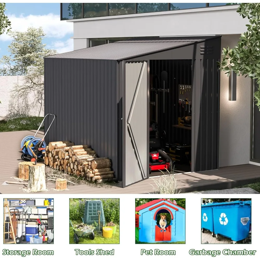 Keep your outdoor space organized with this 6′ x 8′ lean-to metal storage shed, designed to fit neatly against a wall or fence for space-saving convenience. Its compact yet spacious layout makes it ideal for storing bikes, gardening tools, lawn equipment, and patio essentials.