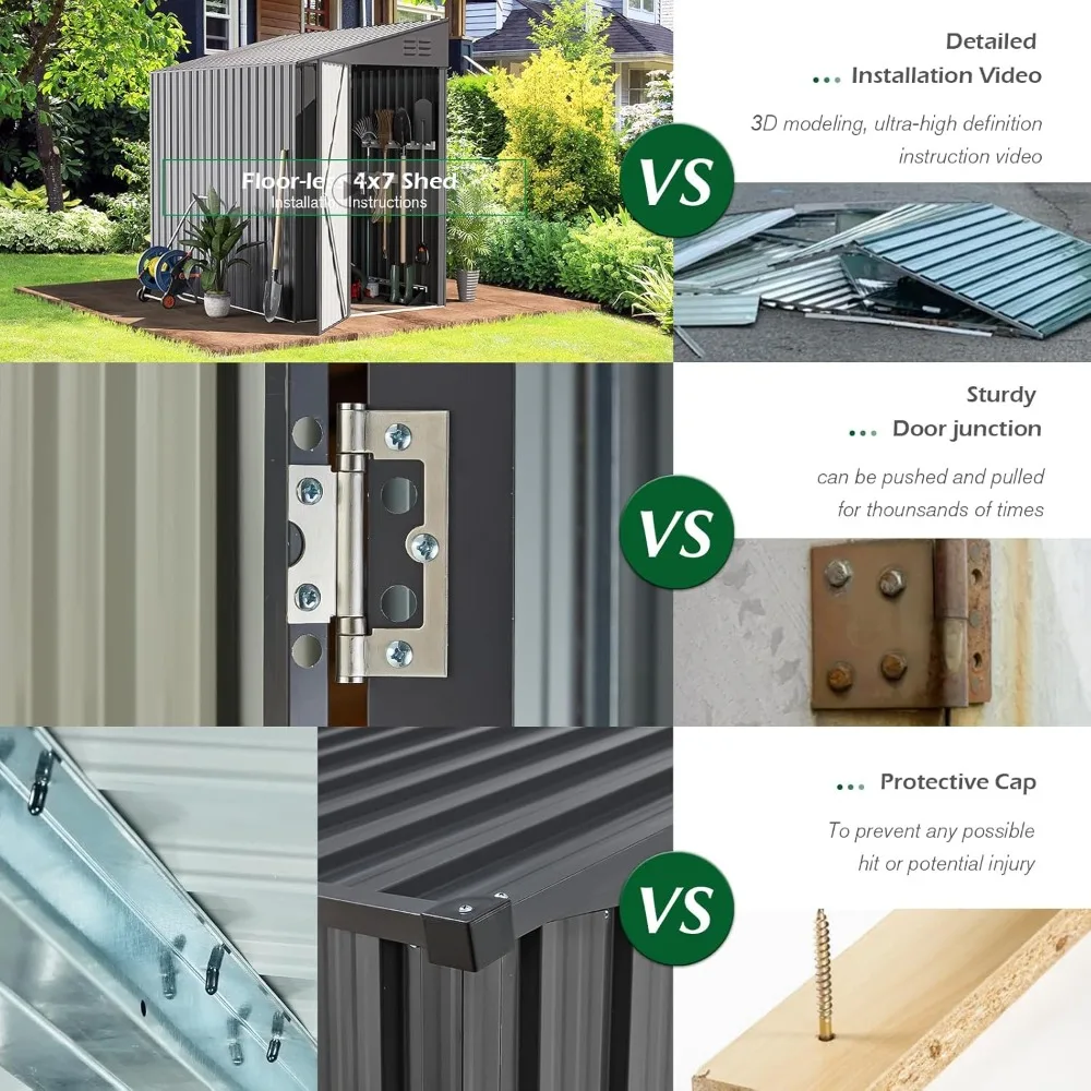 Constructed from durable, weather-resistant metal, this shed is built to withstand rain, sun, and seasonal changes. The sloped roof design promotes proper water drainage while helping protect stored items from moisture buildup.