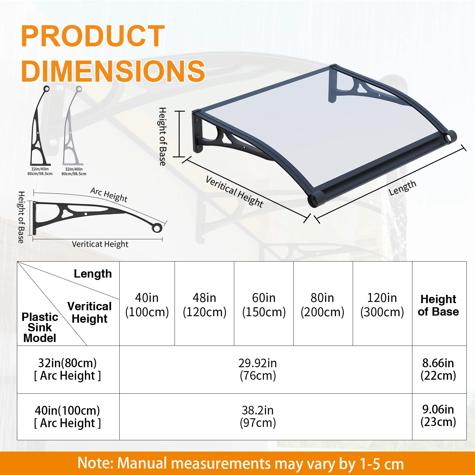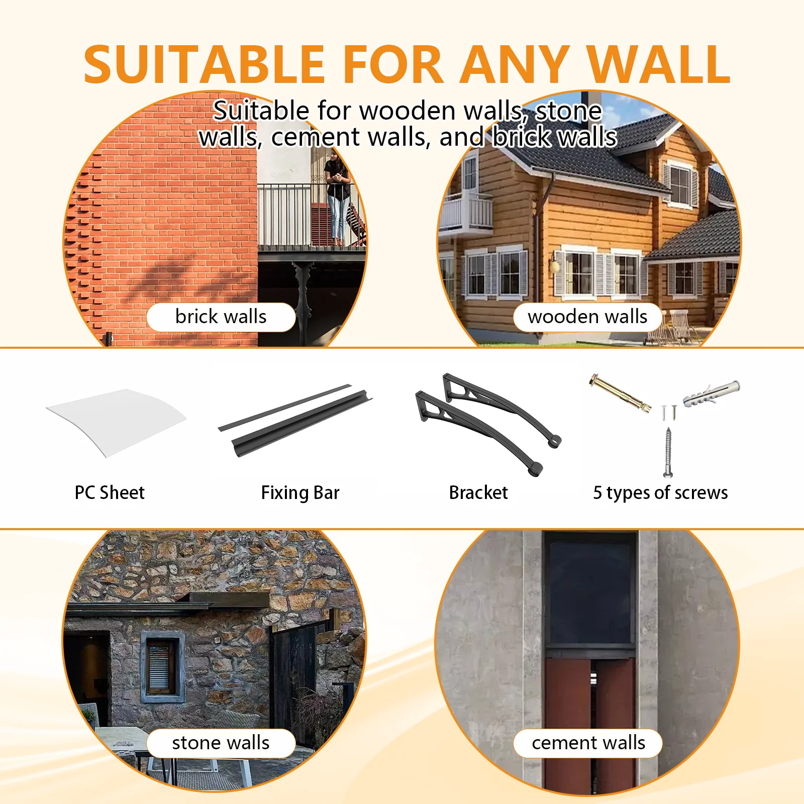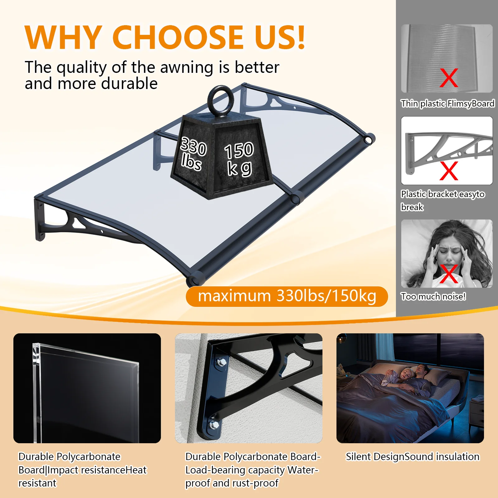 Enhance your outdoor space with this easy-install outdoor awning canopy, designed with a durable aluminum frame and solid polycarbonate roofing sheet. Built for long-lasting performance, it provides reliable protection from UV rays, rain, and snow, making it ideal for patios, decks, doors, and windows.