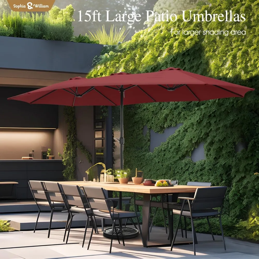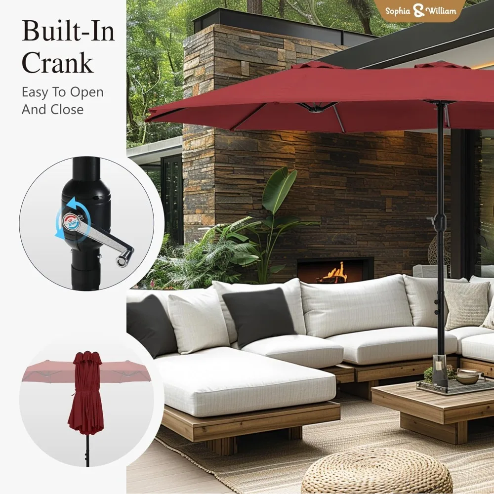 Maximize your outdoor shade with this extra large double-sided rectangular patio umbrella, perfect for patios, gardens, decks, and poolside areas. The dual-sided canopy provides extensive coverage, ideal for large tables, lounge areas, or outdoor entertaining spaces.