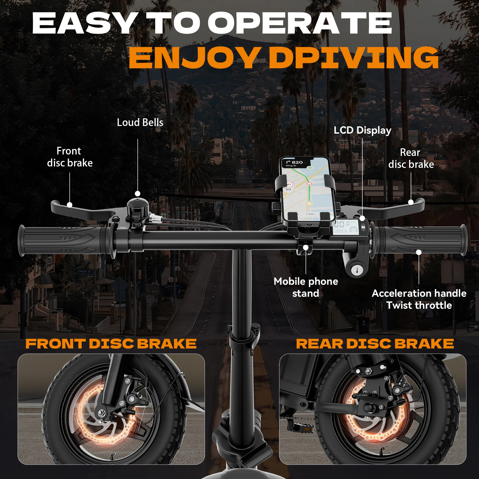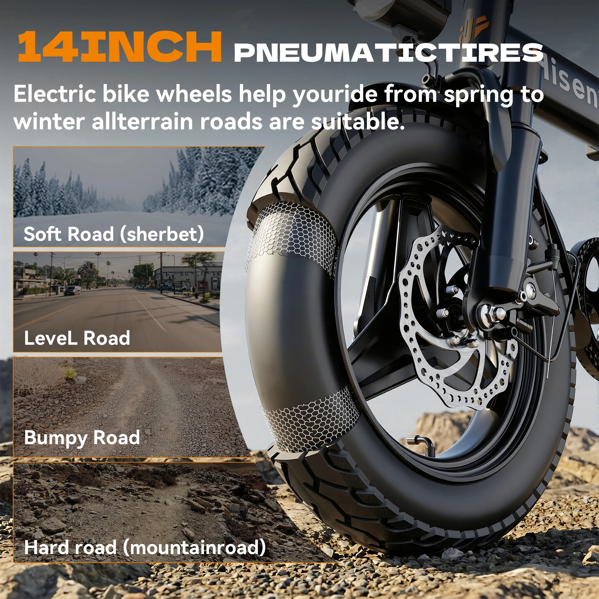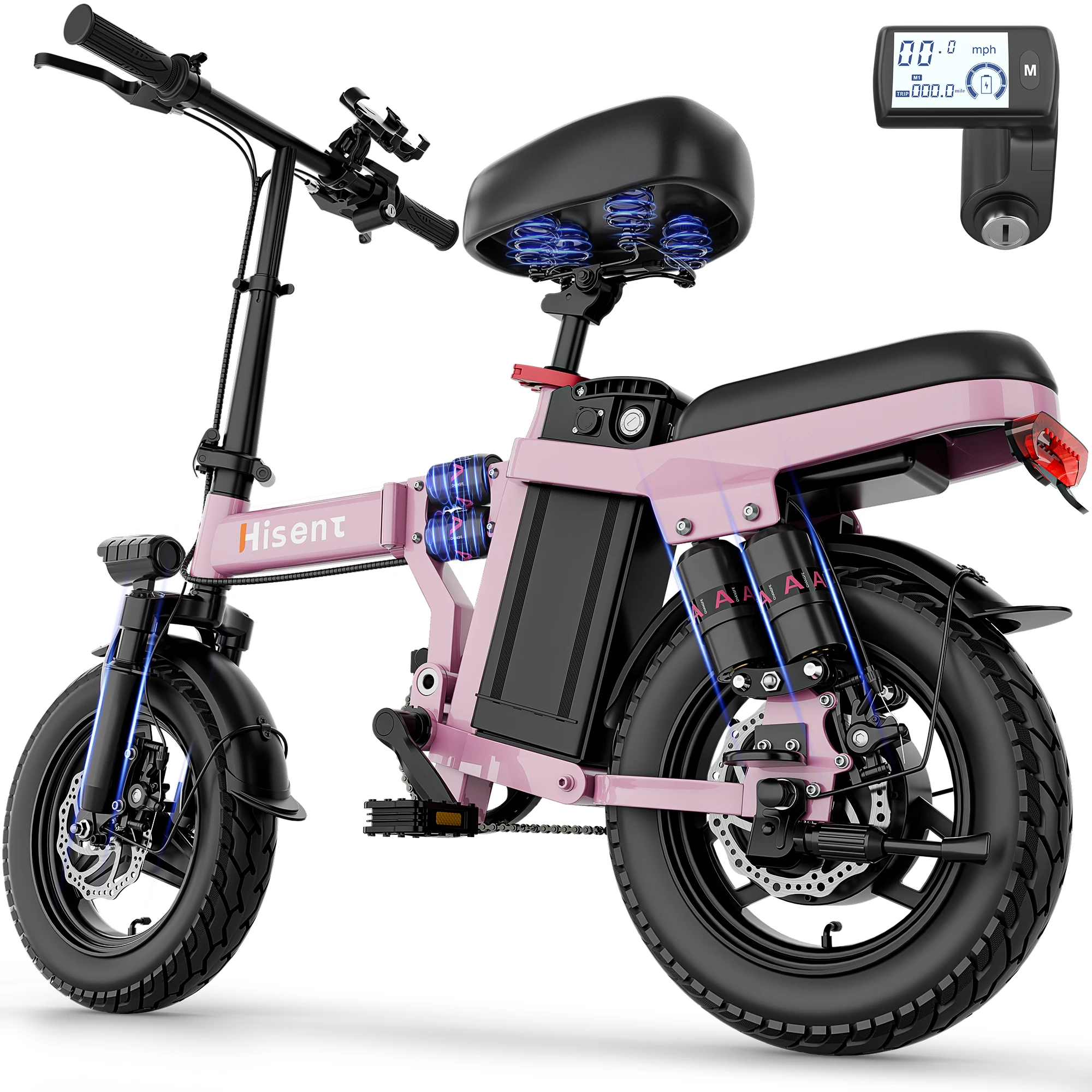Experience convenience and performance with this folding electric bike designed for modern commuting. Its compact folding design makes it easy to store and transport in small spaces. Equipped with a dual suspension system, it provides a smoother and more comfortable ride on varied terrain. The upgraded steel frame ensures durability and long lasting use. Powered by a 17.5Ah battery, it offers a reliable range of 25–35 miles per charge. The 14-inch tires provide stability and maneuverability for urban environments. Ideal for commuting, travel, and daily use, it adapts to your lifestyle. Its electric assist helps reduce effort and makes riding more enjoyable. Designed for practicality, it is perfect for both beginners and experienced riders. Upgrade your transportation with a folding electric bike that delivers portability, comfort, and efficiency for every ride.