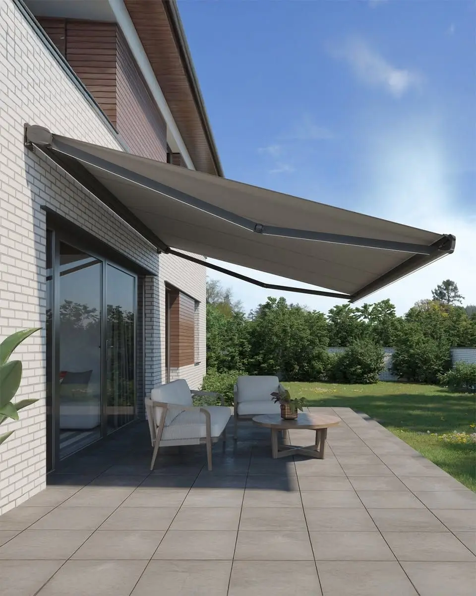 Equipped with a remote-controlled electric motor, this awning allows smooth extension and retraction with minimal effort. Integrated LED lighting adds ambient illumination, making it perfect for shops, cafés, patios, and commercial spaces that operate into the evening hours.