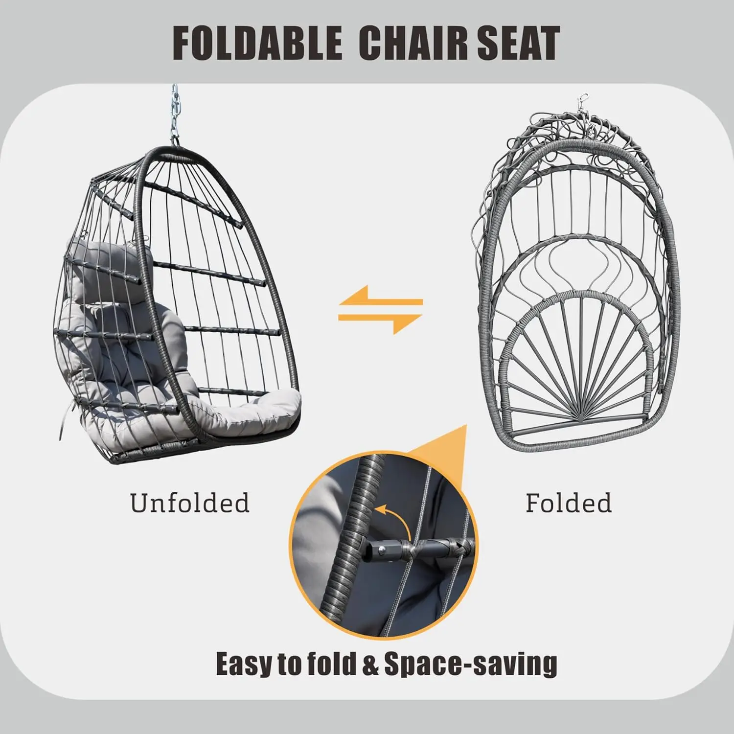 Finished in a versatile grey tone and available with customizable options, this patio egg swing chair blends elegance and comfort—making it the perfect statement piece for any indoor or outdoor space.