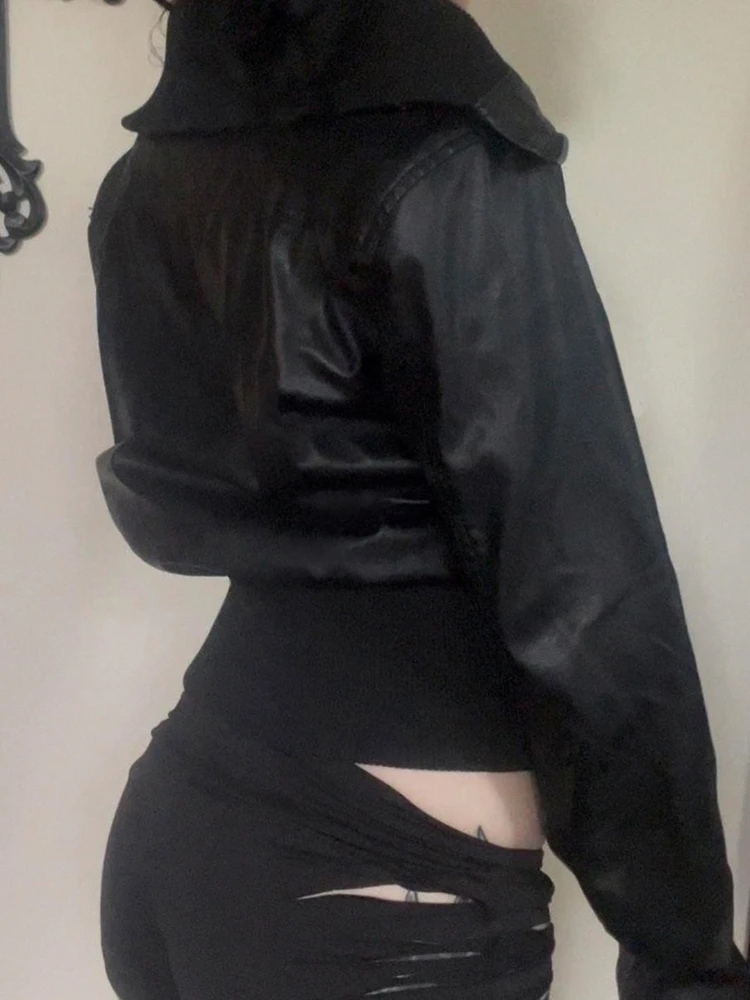 This women’s vintage PU leather jacket combines edgy streetwear with alternative Harajuku-inspired style. The soft yet durable faux leather delivers a sleek, polished look. A full zipper closure ensures easy wear and a modern finish. Its grunge and emo design adds attitude to casual outfits. The relaxed fit allows for comfortable layering over tops or hoodies. Long sleeves provide coverage while maintaining mobility. Perfect for streetwear, casual outings, or themed fashion looks. The versatile black color pairs effortlessly with jeans, skirts, or layered ensembles. Durable construction ensures long-lasting wear throughout the seasons. Whether for daily wear or standout fashion, this jacket delivers comfort, style, and bold personality.
