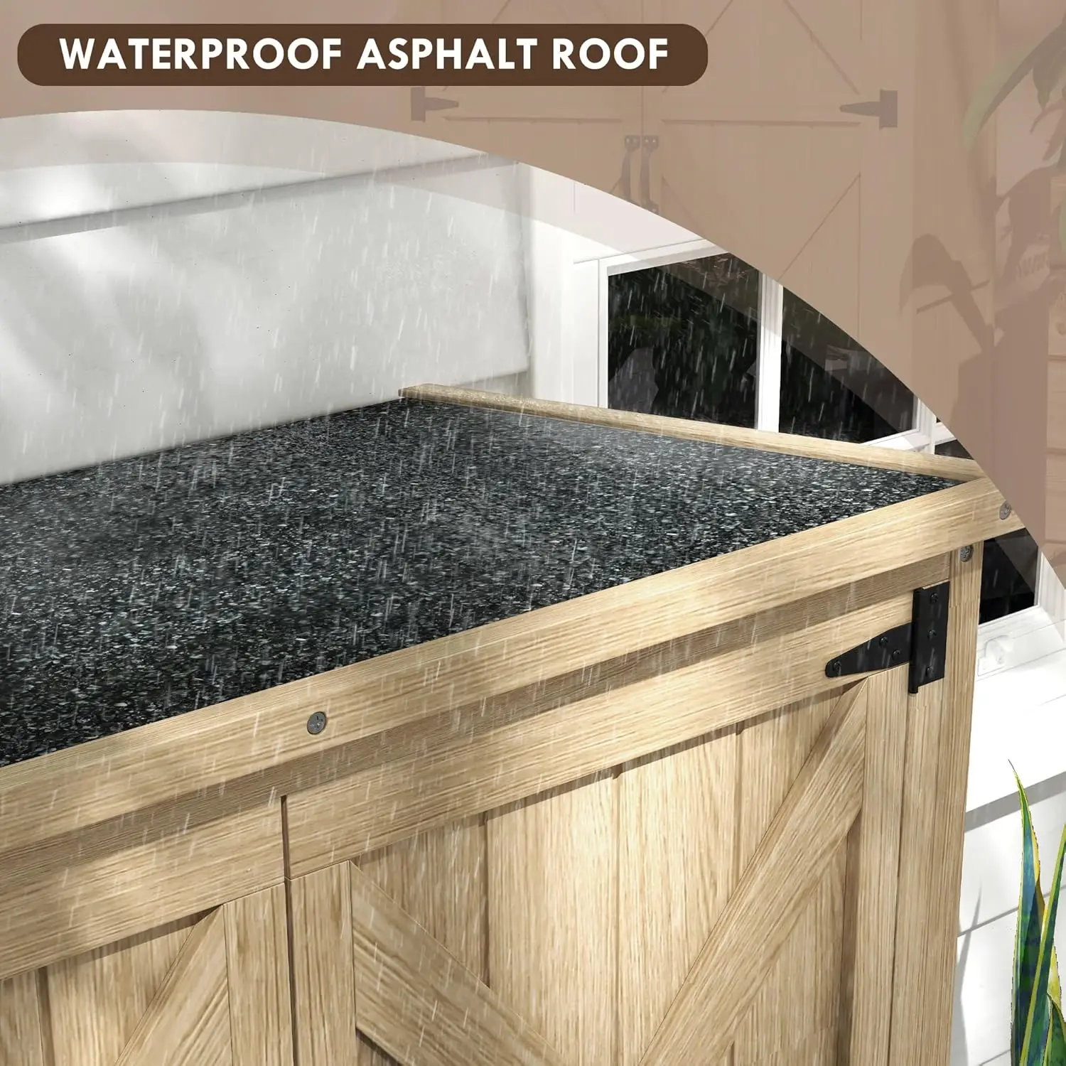Keep your outdoor space organized with this wooden garden shed, designed for durability and practicality. The waterproof asphalt roof protects tools and equipment from rain and weather damage. Narrow yet spacious, it fits neatly in gardens, patios, or small yards. Built-in shelves provide convenient storage for tools, gardening supplies, and other essentials. Crafted from sturdy wood, it ensures long-lasting stability and reliability. Its classic design complements any outdoor environment while offering functional storage. Easy assembly allows quick setup without hassle. Weather-resistant materials ensure longevity through seasonal changes. The compact design maximizes storage without taking up unnecessary space. Whether for gardening, backyard organization, or patio storage, this shed delivers practicality, durability, and outdoor convenience.